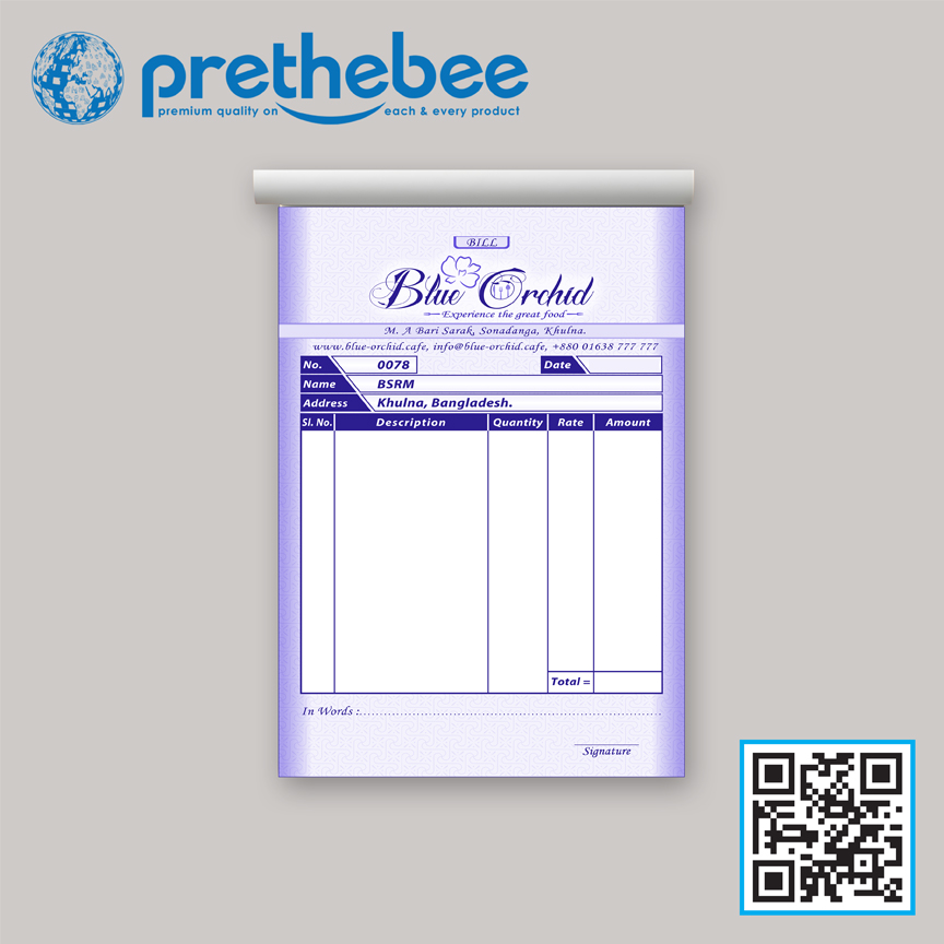 Cash Memo or Challan (Size: 5.5*8.75, 1 color, Auto Carbon paper Bashundhara, 10 books of 100 pages, duplicates printed with numbering)