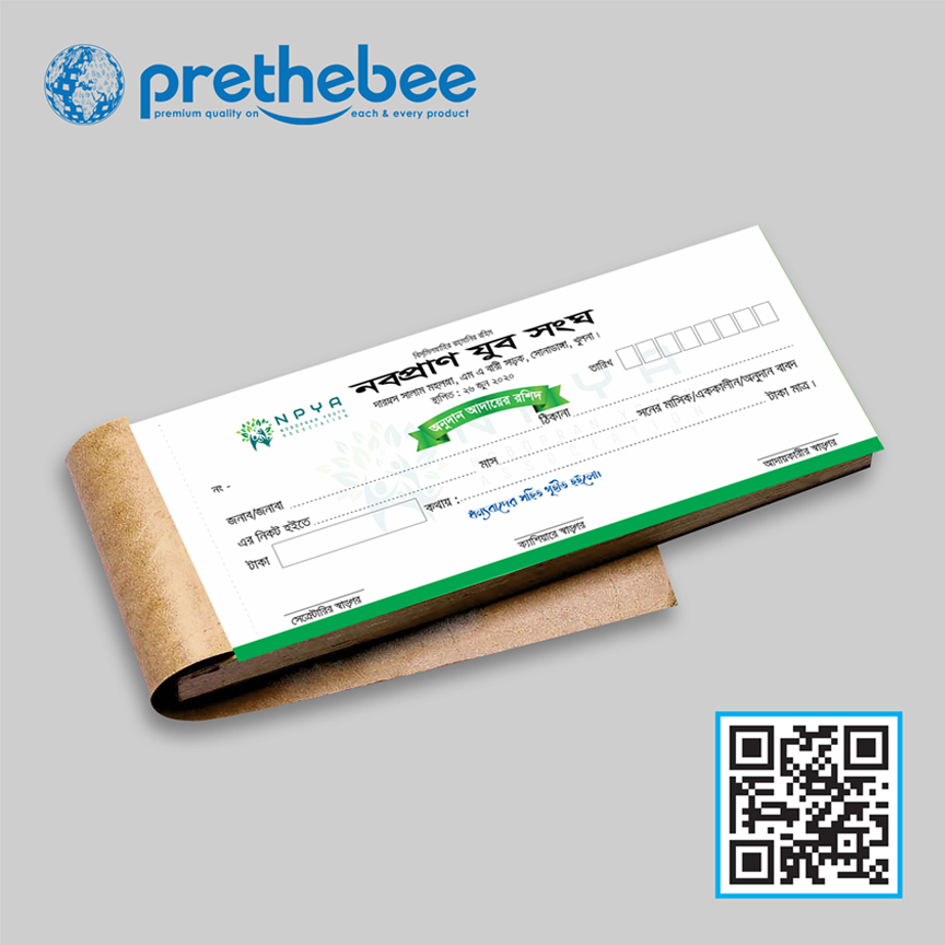Money Receipt (Size: 3.25*11.25, 4 color, 80gsm Offset paper, 10 books of 100 pages, with numbering)